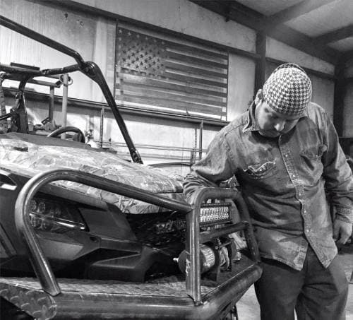The Tough Country UTV Bumper for the Honda Pioneer 1000 comes standard equipped with a 2" heavy duty pipe base, 12 gauge diamond plate, winch ready, 3/8" shackle mounts, 2" receiver, 1" pipe light loops, black wrinkle powder coat and mounts to the factory holes.
