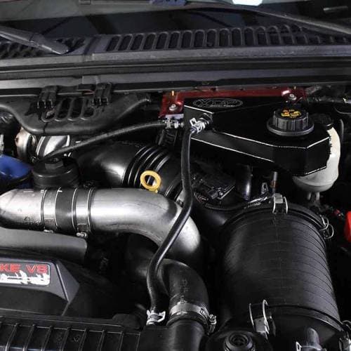 The XDP Aluminum Coolant Recovery Tank Reservoir XD375 adds styling and function under the hood of your 2003-2007 Ford 6.0L Powerstroke. Forget about attempting to shine up the plastic factory coolant recovery tank to make your truck show-worthy, replace it once and for all with the XD375.