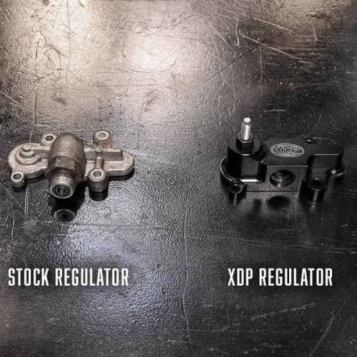 The XD369 features a CNC-machined billet aluminum construction and an anodized black finish to give you durability, strength, and another good looking dress-up part under the hood. This regulator works with the factory spring, along with the Blue Spring upgrade. Each unit comes ready to install with a new gasket.