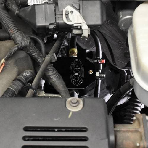 The XDP Cummins 6.7L CAT Filter Adapter XD381 improves fuel filtration efficiency and ease of service of the fuel system on your 2010-2018 Dodge 6.7L Cummins. The XD381 features a billet aluminum fuel filter head that replaces the stock fuel filter and allows you to mount the CAT 1R-0750 high efficiency fuel filter under the hood of your truck.