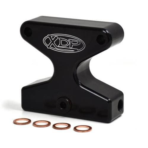 The XDP Fuel Filter Delete bolts in-place of the factory filter canister and connects to the existing lines without requiring any modifications. Featuring a black anodized finish and billet aluminum construction, each Fuel Filter Delete has pre-drilled and tapped ports that give you the ability to re-install the factory Water In Fuel (WIF) Sensor, and also connect a dual CP3 return line.