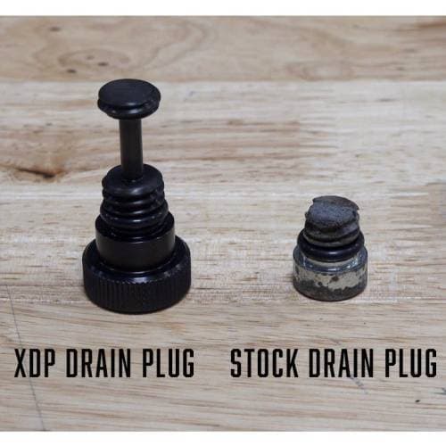 The factory plug also causes the draining fuel and water to land directly on the driveshaft making a mess during routine maintenance. The XDP HFCM Water Separator Drain Plug Upgrade has been designed with a built-in retaining shaft that keeps the plug from falling out, and also wicks the fuel away from the driveshaft so you can keep things clean.
