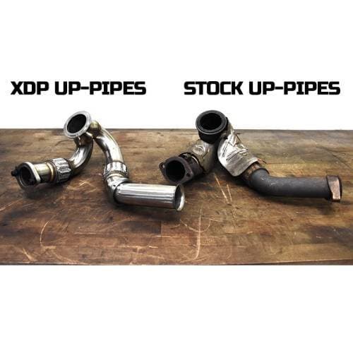 Replace the leaking up-pipes in your 2003-2007 Ford 6.0L Power Stroke with the XDP Upgraded Exhaust Up-Pipe Assembly XD218. The factory up-pipe assembly is prone to failure causing power robbing exhaust leaks that reduce engine performance, efficiency, and drivability. Designed as a bolt-on replacement, the XDP Up-Pipe Assembly Features a stainless steel construction and heavy-duty bellows for increased durability and long service life.