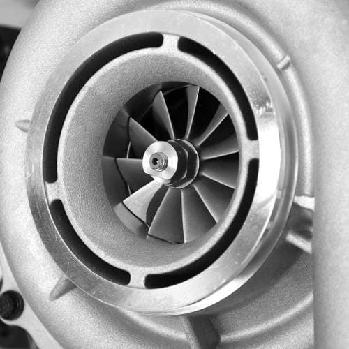 The Xpressor OER Series Turbo follows a rigorous remanufacturing process that ensures it meets OEM specifications. Each turbo is disassembled into individual components, all parts are thoroughly cleaned and inspected. Checks are performed for damage at the housing, compressor, turbine wheels, and rotating assembly. All bearing surfaces are then precision machined before reassembly. The wheels and rotating assemblies are balanced to OEM specifications. Critical wear parts such as seals, thrust plates, bearings, and fasteners are replaced. End of line testing is done to ensure proper operation. A turbocharger installation kit is also included with new O-rings, bolts, and oil feed line gasket.