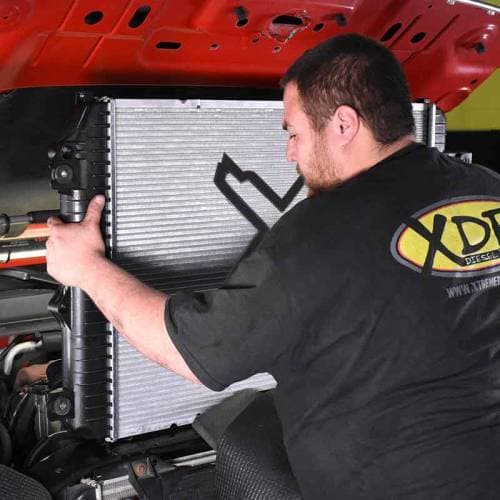 With more fins per inch, and heavy duty tubes to increase cooling efficiency, the upgraded core design allows you to maximize cooling potential of your Duramax.