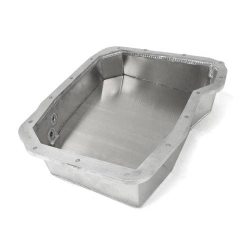This transmission oil pan features a fully welded aluminum bottom of added strength and an enhanced look. Unlike cast pan on the market, this pan has a welded design that gives you a high performance look with a added capacity design. Each pan has a large magnetic drain plug for easy oil changes. On the side of the pan is an 1/8th inch NPT bung for easy installation of a temperature sensor. The 3/8" mounting flange for durability and installs easily using a factory style gasket(NOT INCLUDED). Each pan comes ready to install and is backed by a 1 year, unlimited mileage warranty.
